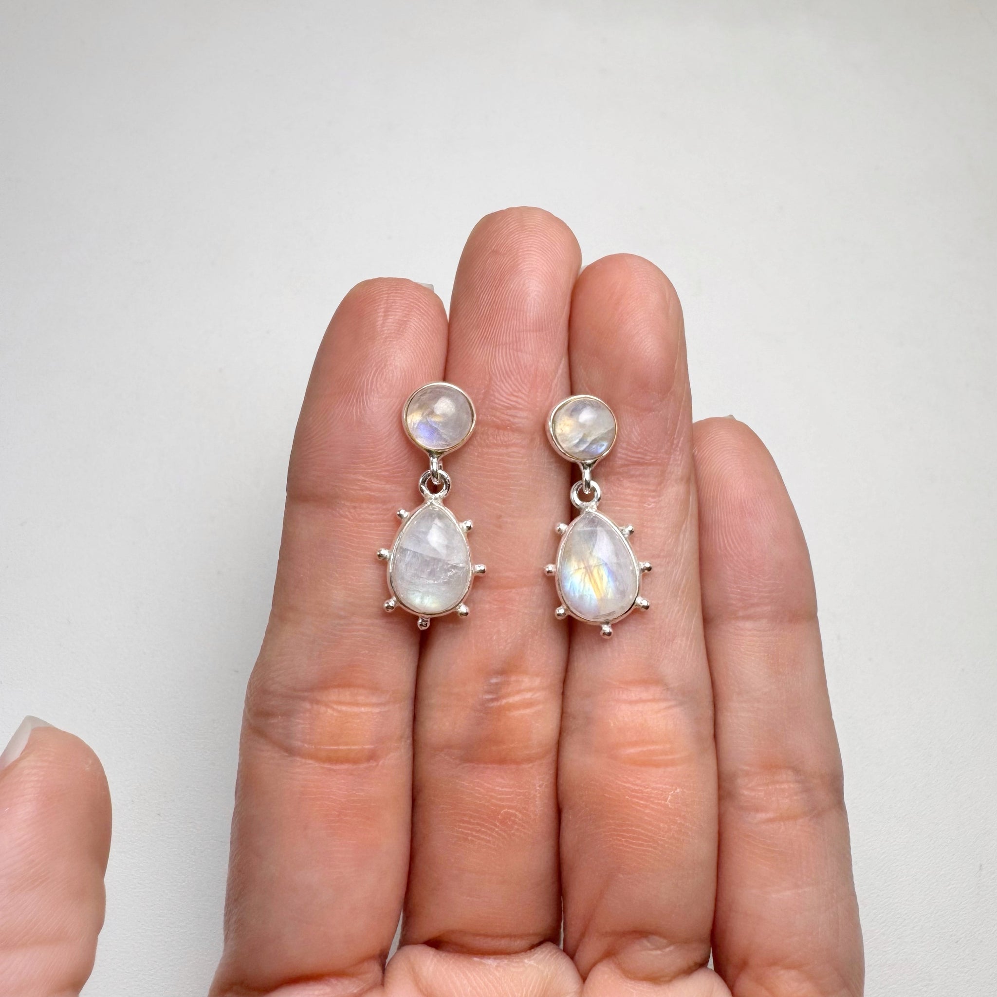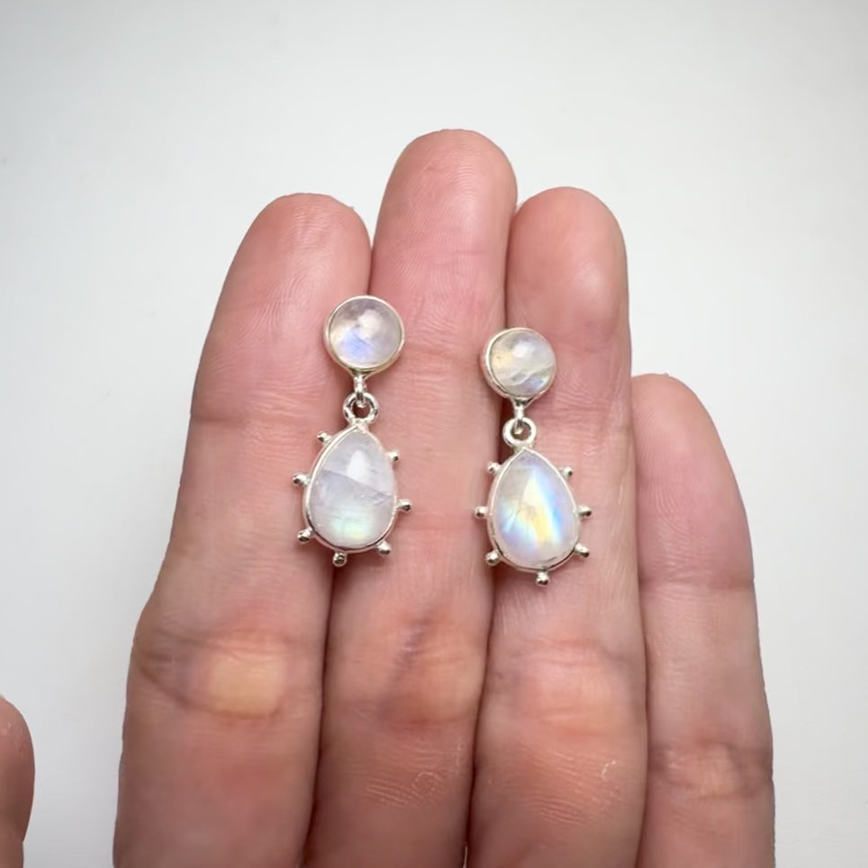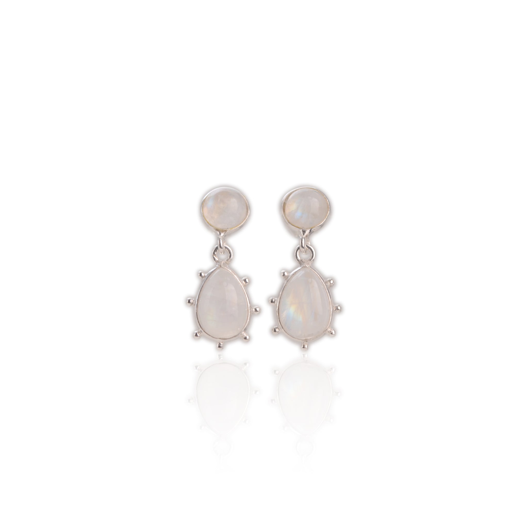 7 x 10 mm. Pear Cabochon White Indian Moonstone Drop Earrings